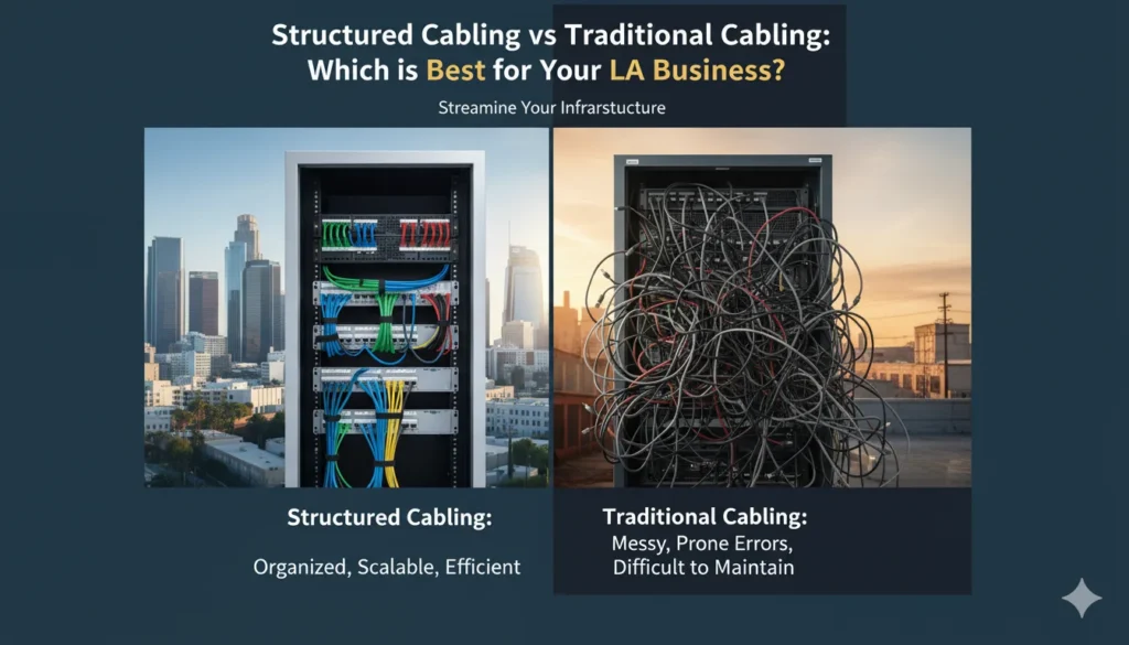 15 Sep Miscellaneous Structured Cabling vs Traditional Cabling: Which is Best for Your LA Business? 19 November, 2025 By Blogger Connectivity and communication in today's business environment is of utmost importance, so designing the infrastructure of an office or...Continue reading